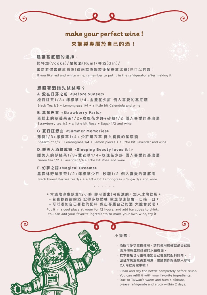 附註:此商品不含酒(推薦伏特加/琴酒/蘭姆酒作為基底酒之選擇)