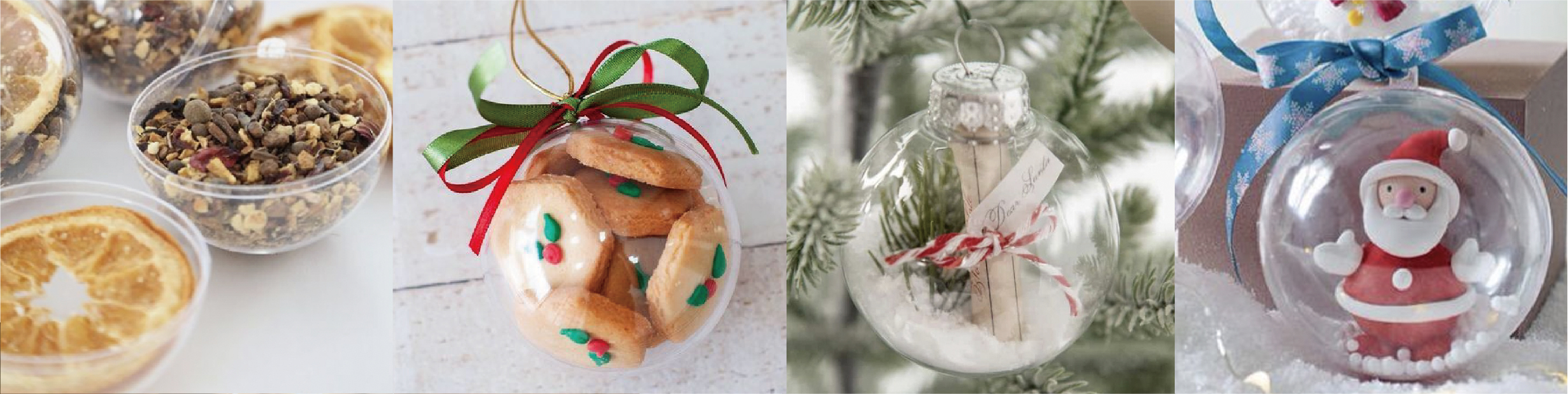 可掛於聖誕樹上,晶瑩剔透的塑膠球裡可以裝喜歡的
