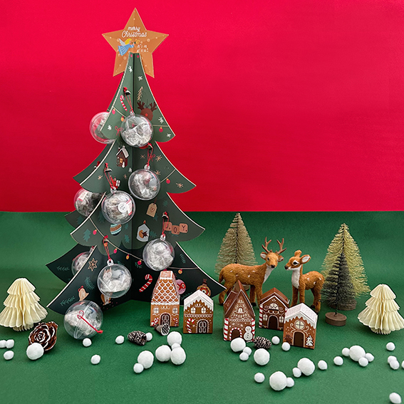 (下圖為情境示意圖/ 贈送之禮物為聖誕樹與20顆透明空的扭蛋球)