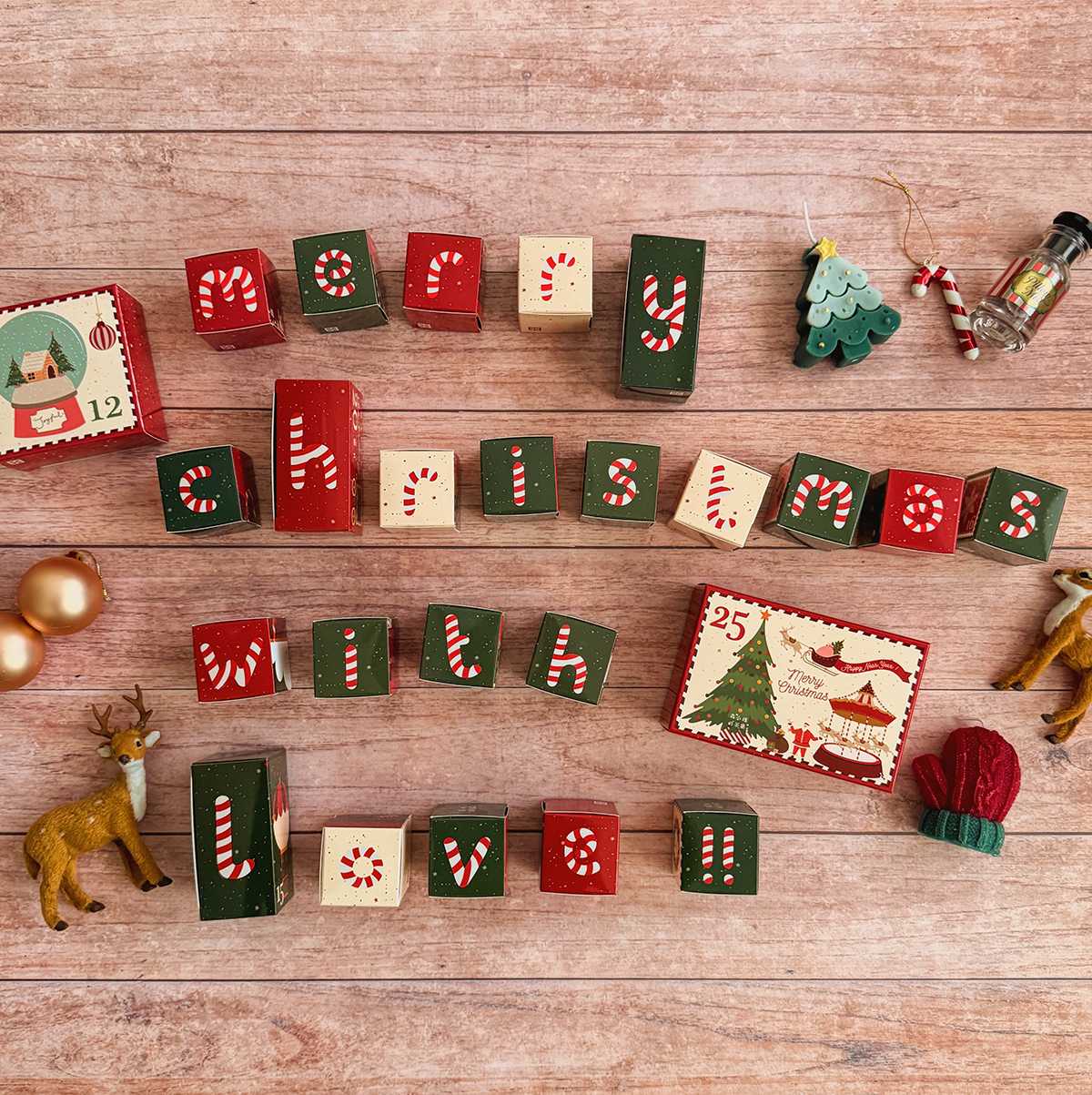 - 側邊有英文字可以組合成聖誕的秘密祝福 -