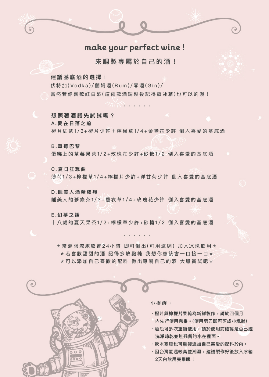 附註:此商品不含酒(推薦伏特加/琴酒/蘭姆酒作為基底酒之選擇)