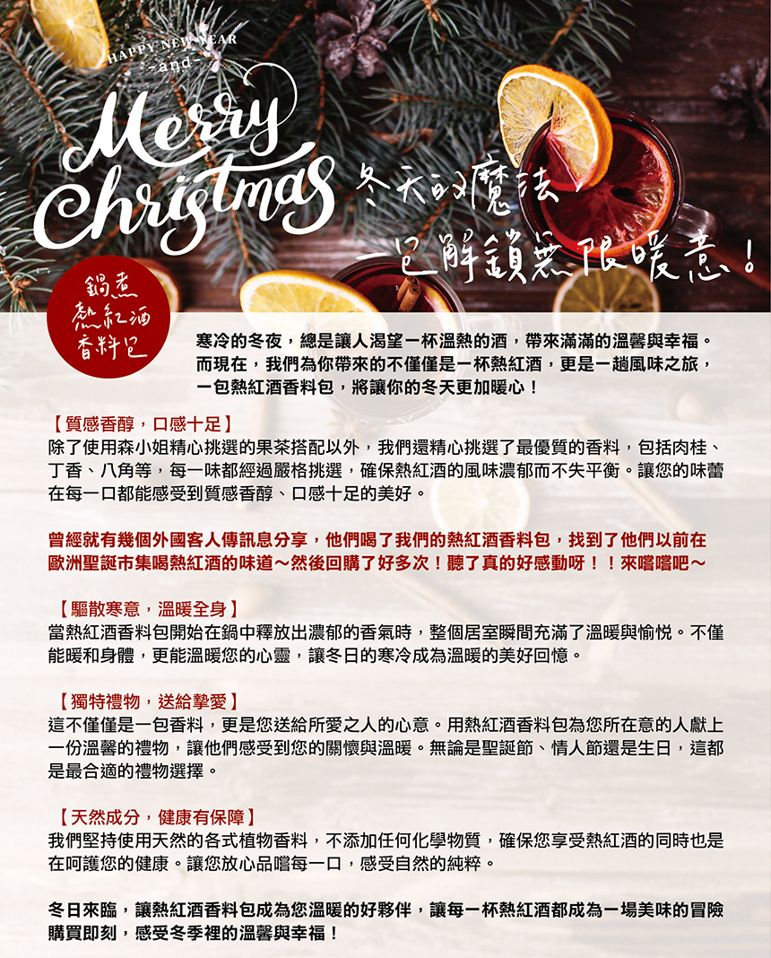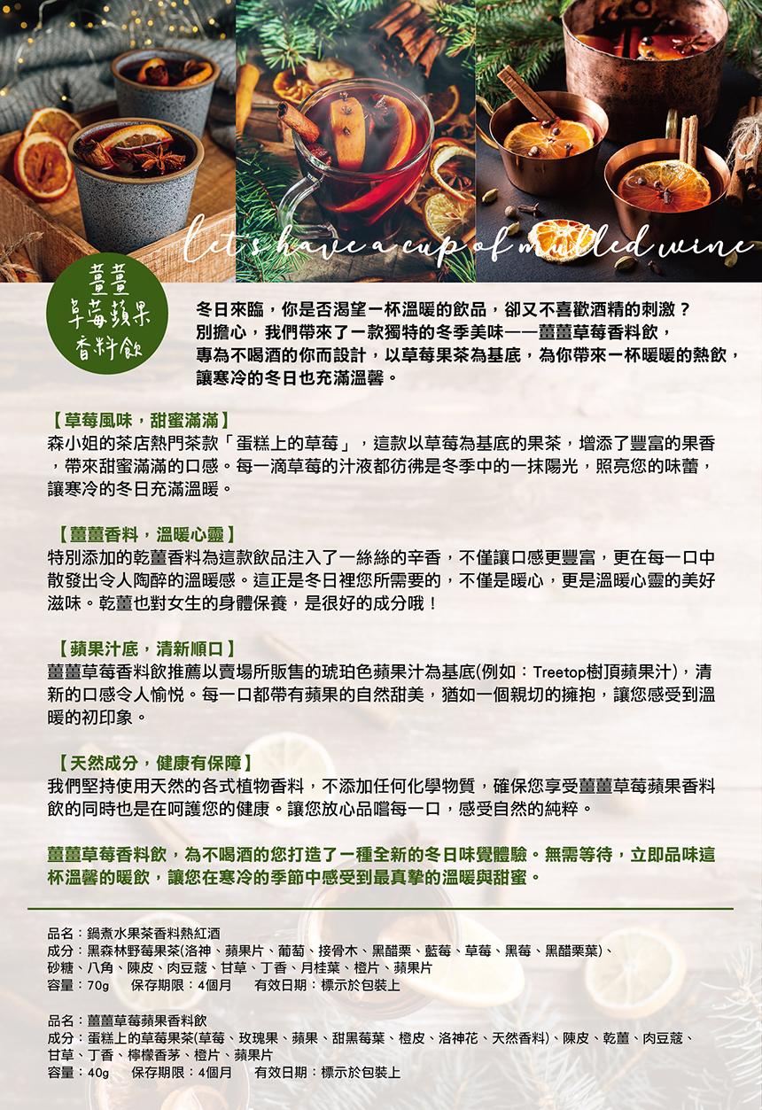 森小姐的紅酒香料包,特別加入我們精心調配的果實茶為基底,