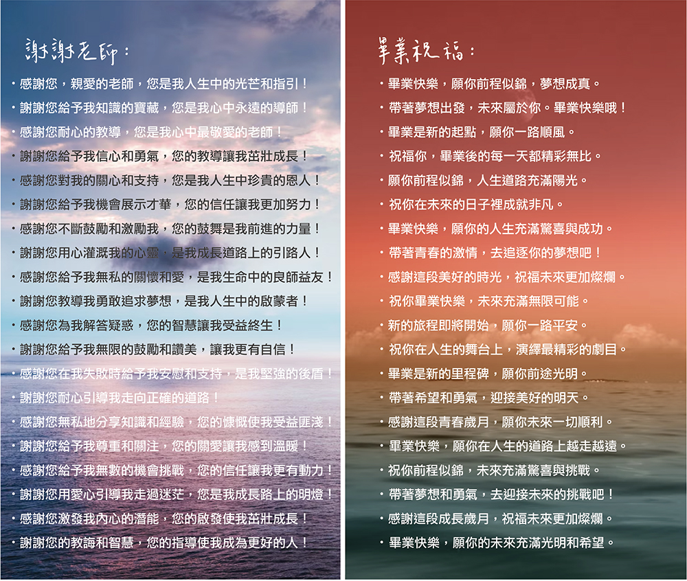 【G.謝謝老師 / H.畢業祝福】